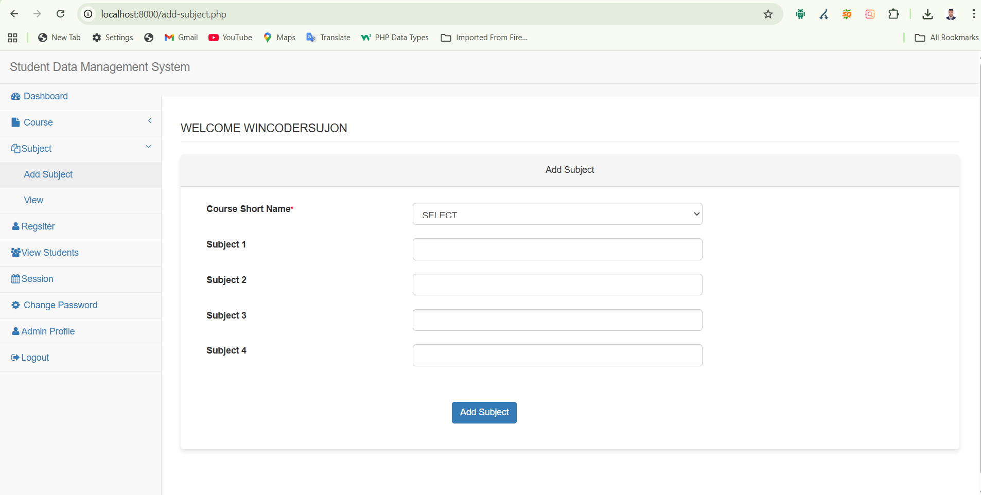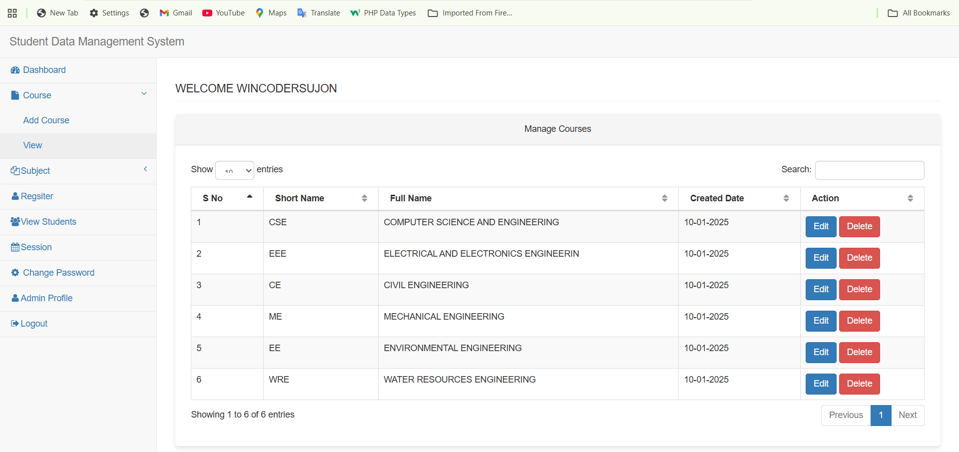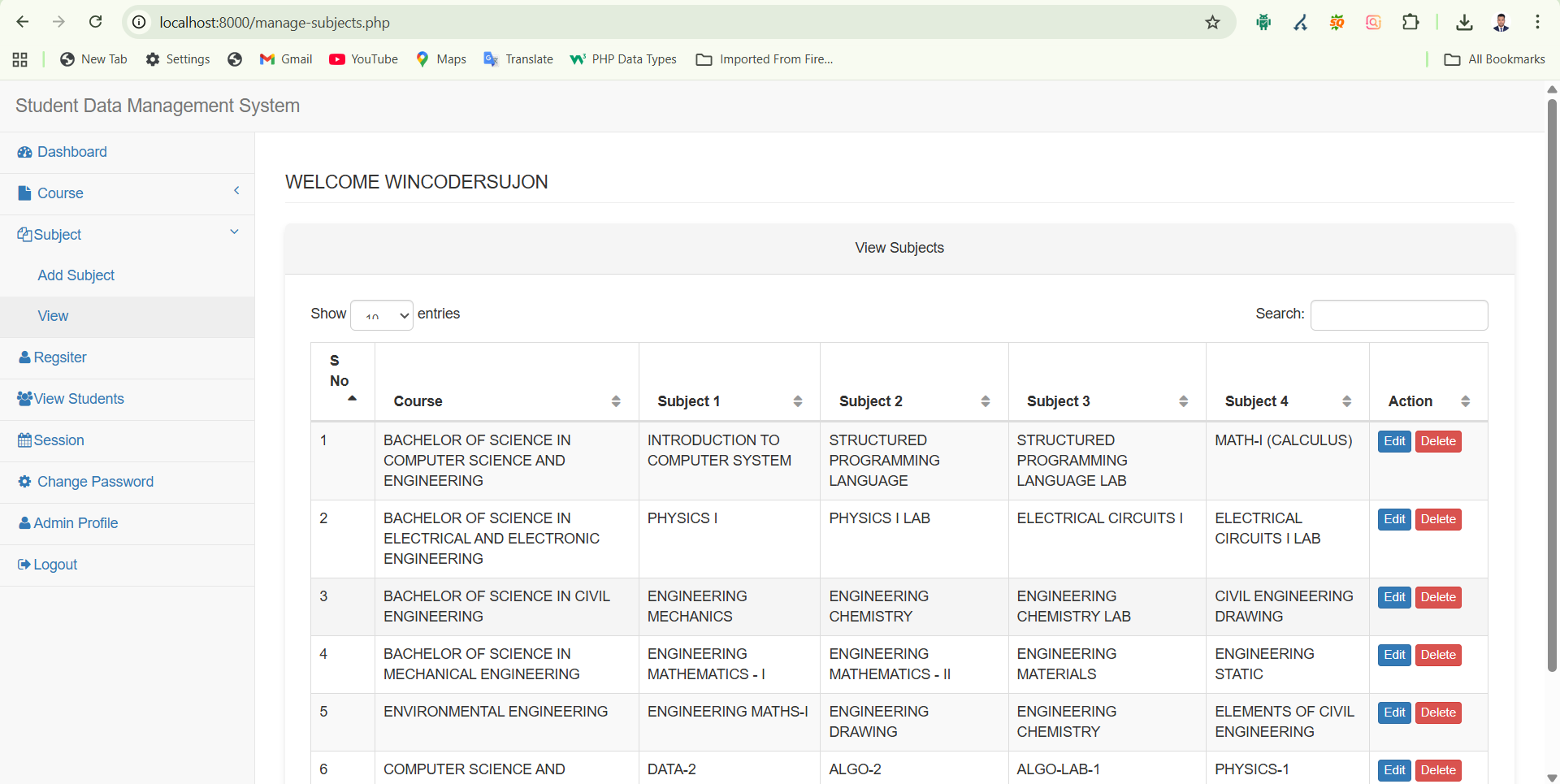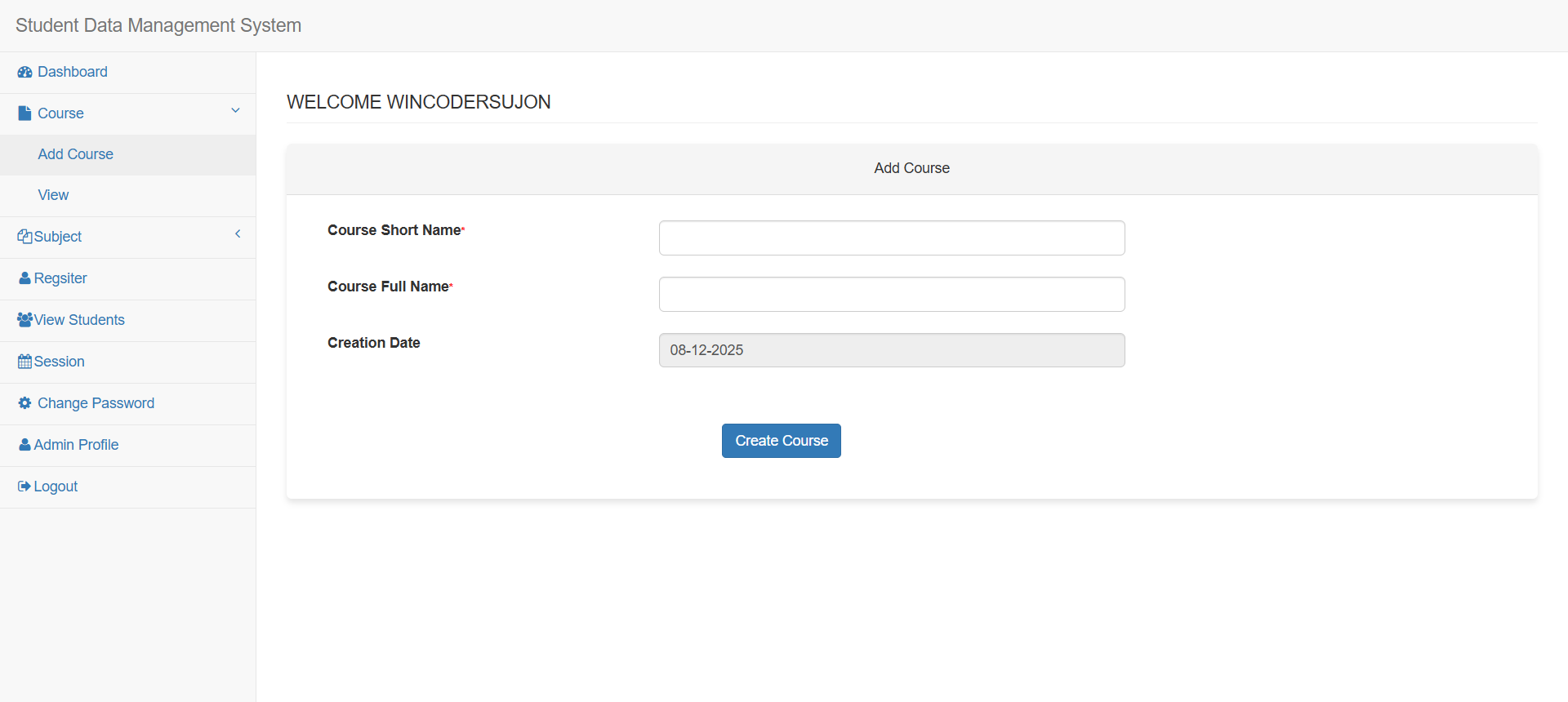 Subject Management (CRUD): Add, Edit, Delete subjects course-wise.