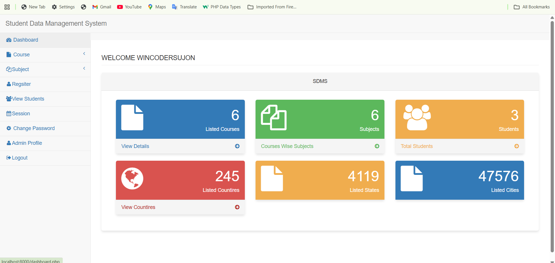 Dynamic Dashboard to view totals (Courses, Students, Subjects, Locations).